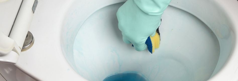 Verunreinigungen unter dem rand einer toilette sind schlecht zugänglich.